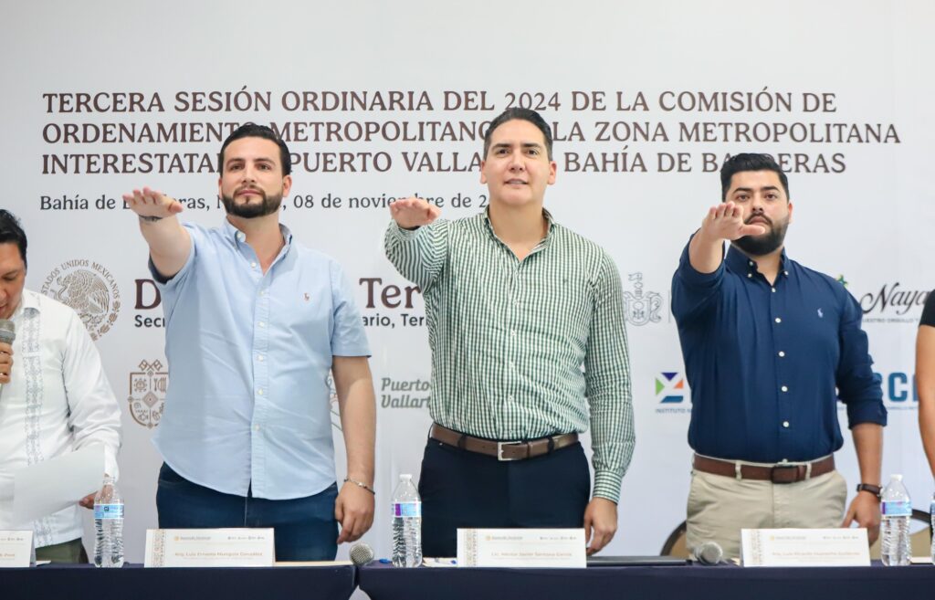 En una muestra de trabajo colaborativo entre Bahía de Banderas y Puerto Vallarta, se llevó a cabo la tercera sesión ordinaria de la Comisión de Ordenamiento Metropolitano, con la misión de consolidar un desarrollo integral en la Zona Metropolitana Interestatal. Esta sesión, centrada en aspectos clave como la movilidad, seguridad y ordenamiento territorial, estuvo presidida por el alcalde de Bahía de Banderas, Héctor Santana, quien ahora asume el liderazgo del Consejo de Metropolización de la región.