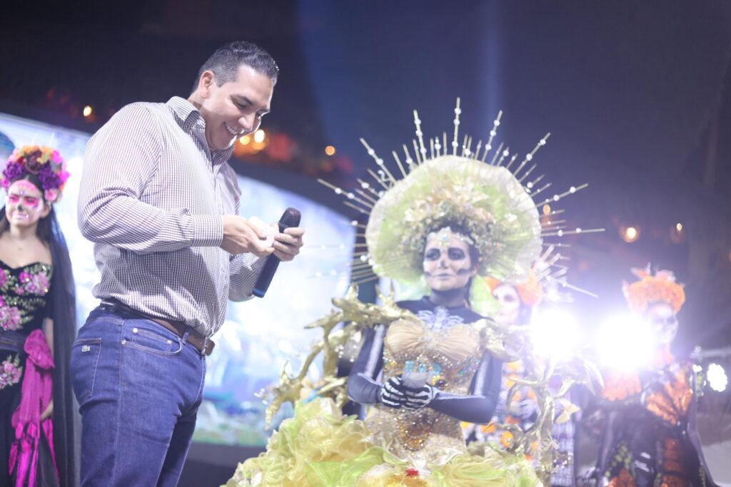 El presidente municipal, Héctor Javier Santana García, acompañado de su esposa Margui Zúñiga y sus tres hijas, todas caracterizadas de bellas catrinas, compartió su entusiasmo y orgullo por este evento. “Esto es nuestra cultura, estas son nuestras tradiciones, esta es nuestra riqueza, esto es nuestro México que queremos compartir con el mundo entero. ¡Felicidades a las tres, están hermosas, y que gane la mejor!”, expresó.