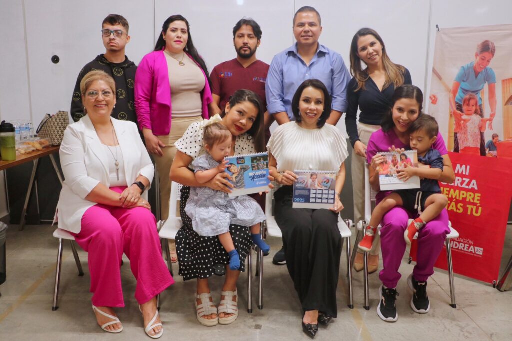 En rueda de prensa, la presidenta de Fundación Andrea 3.21, Karen Malacara, señaló que actualmente son 74 bebés, niños y jóvenes que reciben becas para que continuen con sus terapias en el Centro 321 y este calendario permitirá seguir generando recursos para brindarles el apoyo.