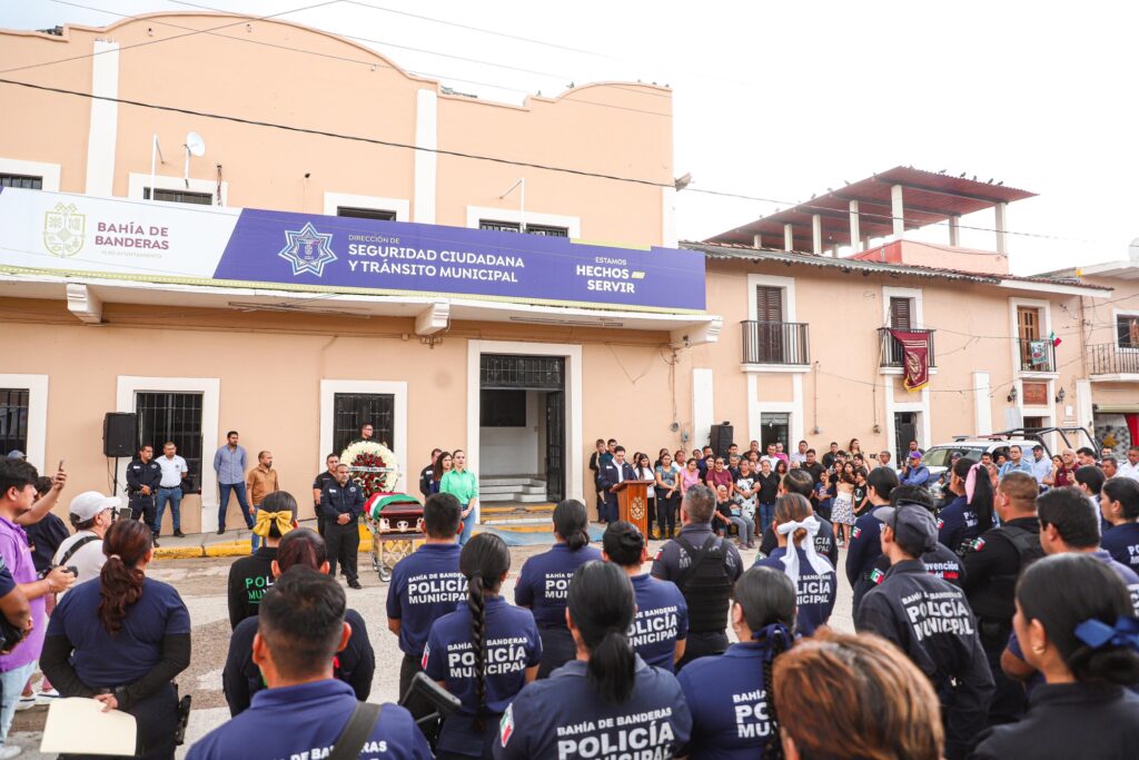 El Gobierno de Bahía de Banderas, que encabeza el presidente municipal Lic. Héctor Santana, realizó este lunes un sentido homenaje en memoria del policía municipal José Antonio González Alvarado, quien lamentablemente perdió la vida en un accidente de tránsito al término de sus funciones.