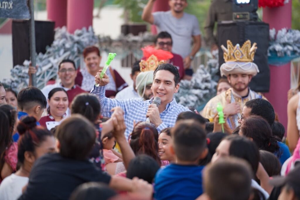 Acompañado por los tres Reyes Magos, Melchor, Gaspar y Baltazar, el alcalde encabezó la entrega de Rosca de Reyes, así como de chocolate caliente, piñatas, dulces y regalos, creando un ambiente festivo, cercano y familiar. Y es que no se trató solo de repartir obsequios, sino de compartir el momento, escuchar a la gente y vivir la celebración junto a ellos.