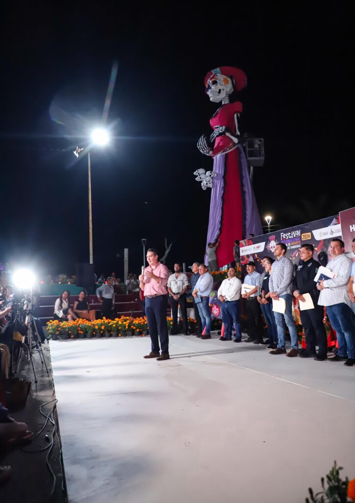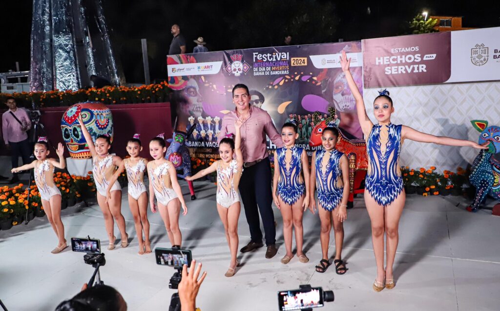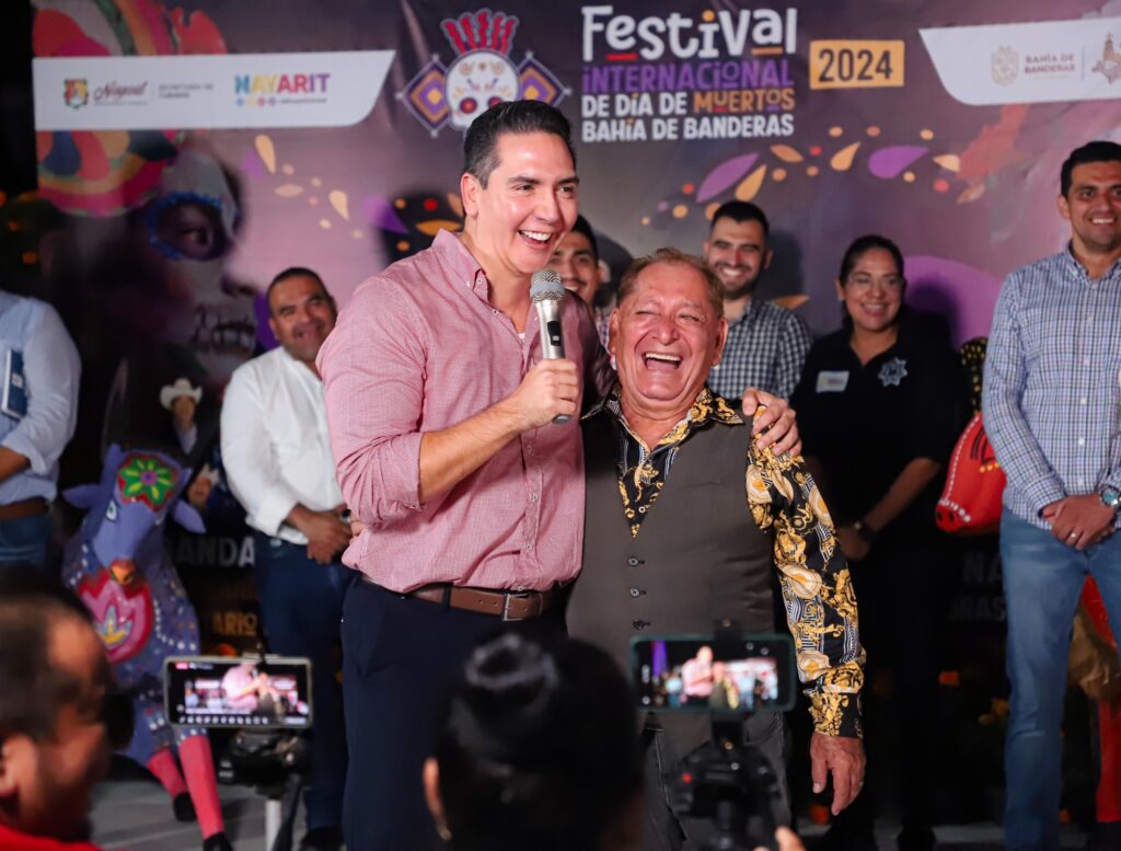 Finalmente, Héctor Santana realizó una cuenta regresiva para encender oficialmente la catrina gigante de Bucerías, símbolo de los festejos de Día de Muertos, instalada al inicio del evento y encendida al cierre.