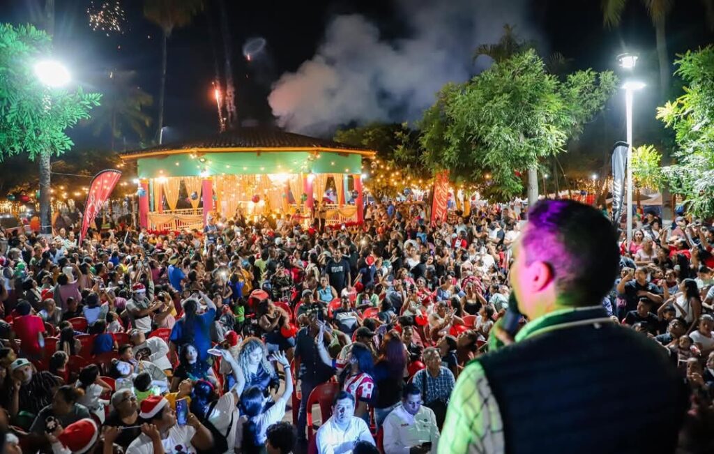 En San Vicente , La Navidad de tus Sueños también llegó con una decoración especial de la plaza pública, realizada con el apoyo del grupo empresarial Álica. Durante su mensaje, Héctor Santana agradeció a la iniciativa privada por su colaboración, destacando la importancia de sumar esfuerzos para el bienestar de los habitantes de Bahía de Banderas.