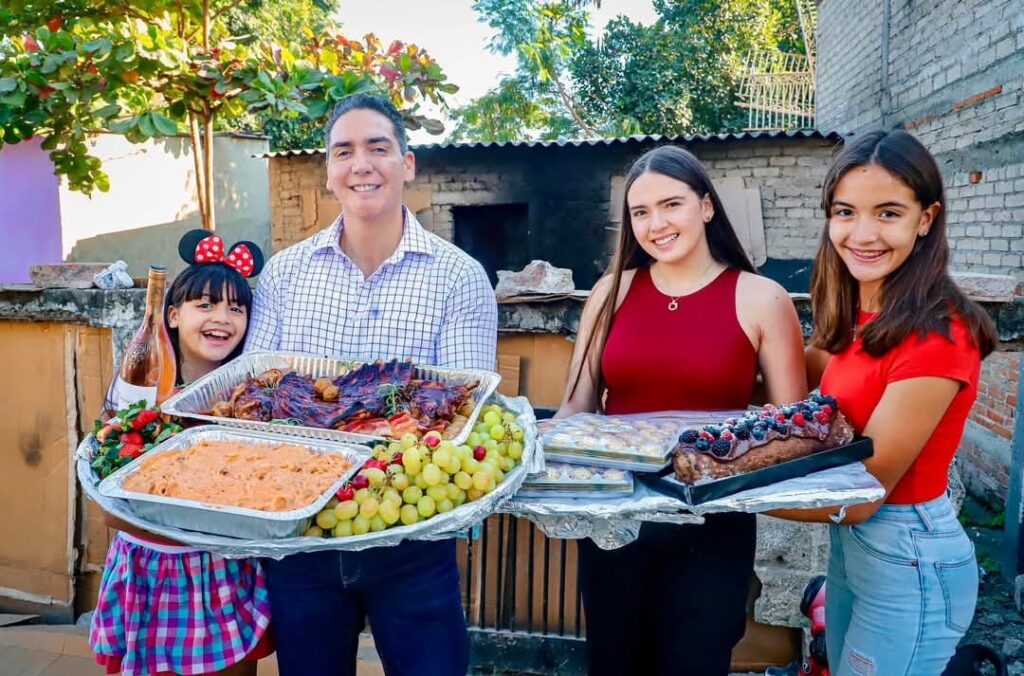 Además de las cenas distribuidas en estos fraccionamientos, el presidente municipal realizó junto a su esposa e hijas la entrega de cenas especiales destinadas a familias en condiciones de mayor vulnerabilidad en Bahía de Banderas. Estas cenas, preparadas con esmero, incluyeron pavos de hasta seis kilos, ensalada navideña, espagueti, pan, chocolates, frutas frescas como fresas, cerezas y uvas, dulces y una botella de vino para brindar. Los niños de estas familias también recibieron peluches, entregados por las hijas del alcalde, llenando de alegría los hogares visitados.