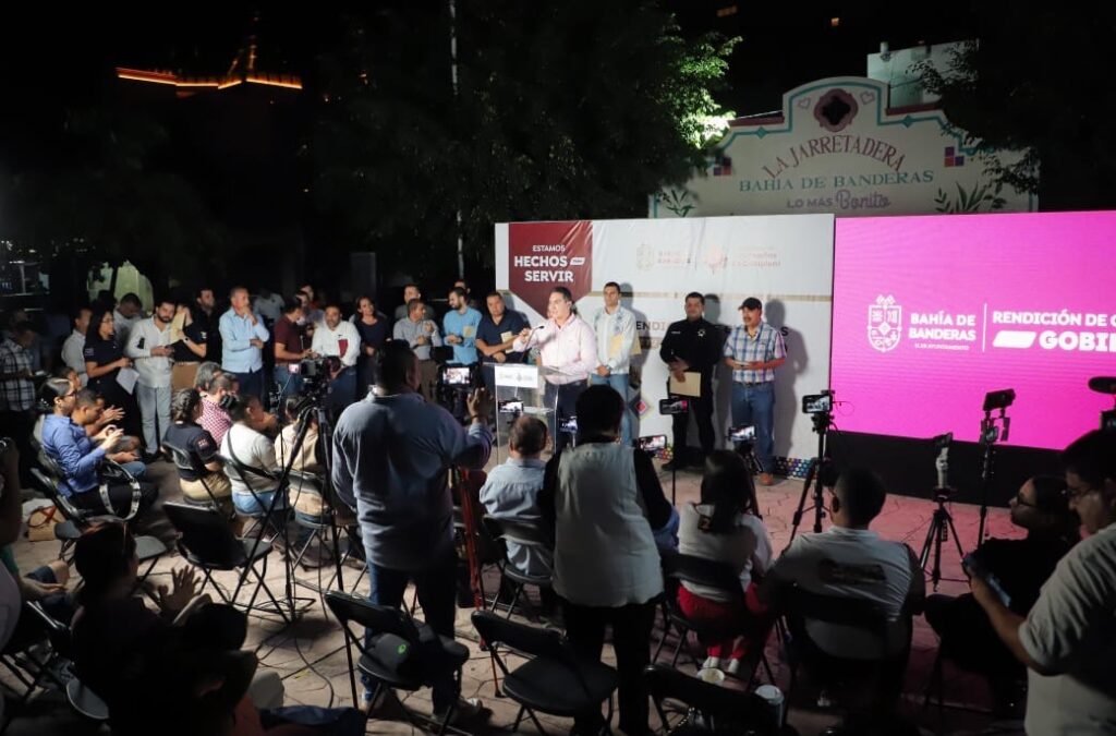 Este miércoles se llevó a cabo la Rendición de Cuentas Semanal del gobierno de Bahía de Banderas, encabezada por el alcalde Héctor Javier Santana García, desde la localidad de Jarretaderas.