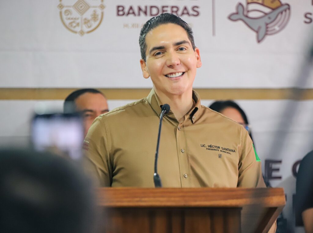 Bahía de Banderas, Nayarit. Desde la Academia de Policías en Valle Dorado, el presidente Héctor Santana encabezó la Rendición de Cuentas semanal, destacando importantes avances en seguridad, infraestructura, servicios públicos y apoyo social. Entre los anuncios más destacados se encuentran un programa de apoyo para migrantes repatriados, la construcción de una alberca semiolímpica y la promoción internacional del municipio.