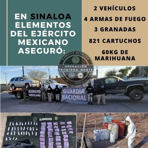 -En Navojoa y Cajeme, elementos del Ejército Mexicano y GN aseguraron un arma de fuego corta, cartuchos, diversas dosis de droga y un vehículo.