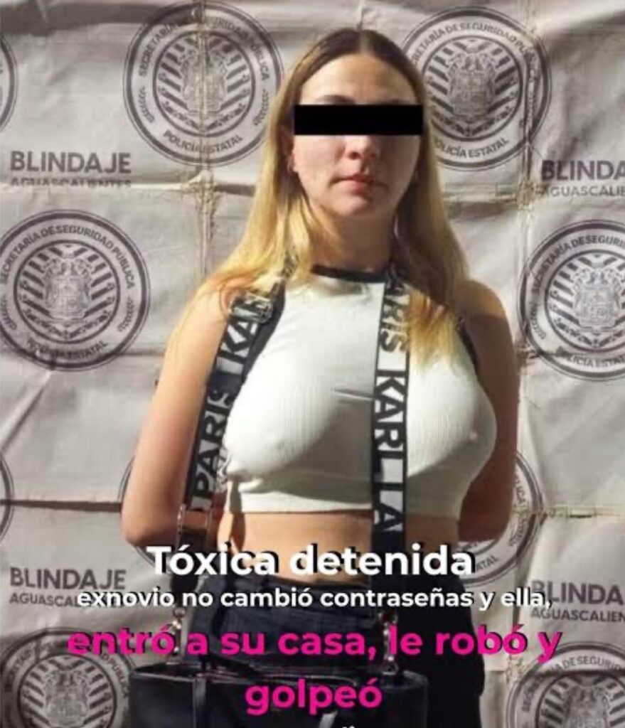 Elementos de la Secretaría de Seguridad Pública y Vialidad del Municipio de Jesús María, Aguascalientes detuvieron a una mujer identificada como Karen «N», de 30 años, acusada del delito de robo calificado tras agredir a su pareja y sustraer objetos de valor de un domicilio.