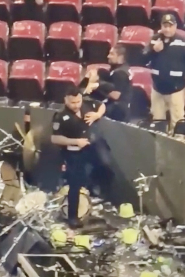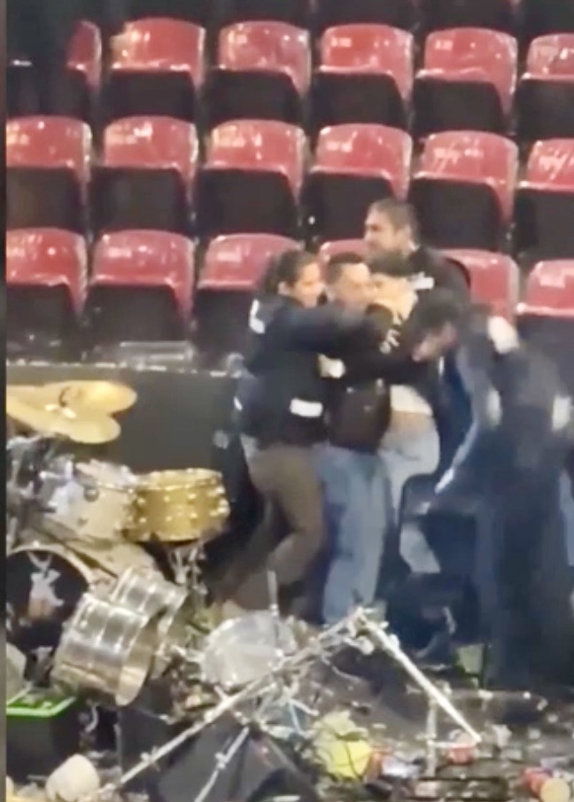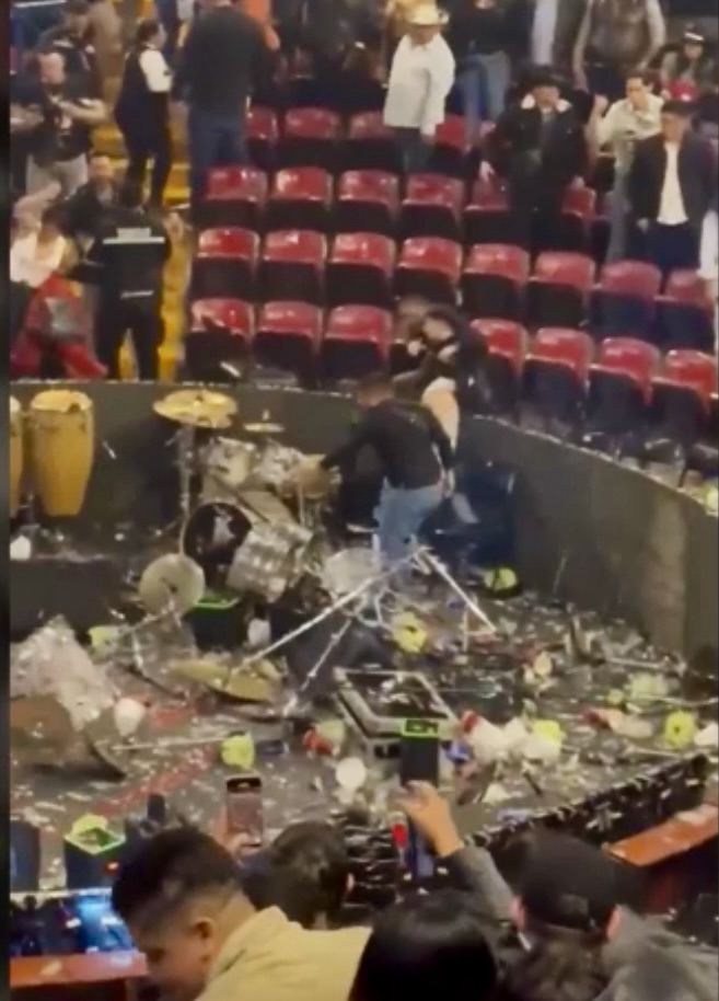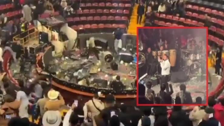 Un sector del público y algunos personajes le exigían al interpretar los Narcocorridos, el cantante se negó y comenzaron a destrozar todo.