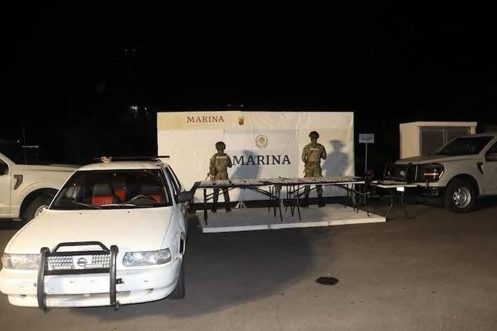 La Vigésima Segunda Zona Naval de la Semar indicó que personal de Infantería realizaba un operativo habitual en inmediaciones del municipio cuando observaron un vehículo tipo sedán sin placas.