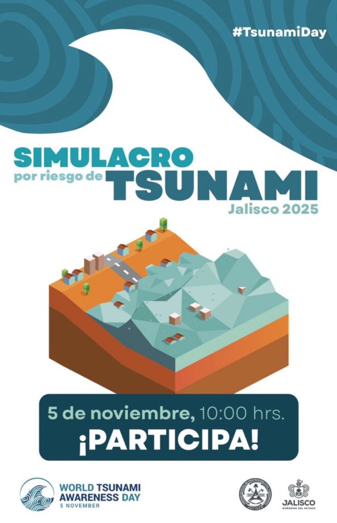 Con el propósito fortalecer la cultura de prevención ante un posible Tsunami, el próximo 5 de noviembre, todos los municipios de la franja costera de Jalisco participarán en un SIMULACRO.