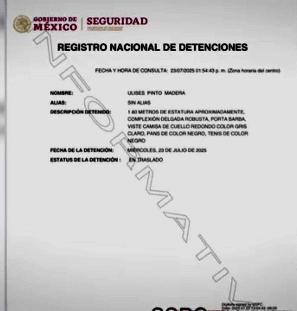 Tras su detención, Ulises “N” fue trasladado bajo estrictas medidas de seguridad a la Ciudad de México, donde será presentado ante un juez federal para enfrentar el proceso legal correspondiente.