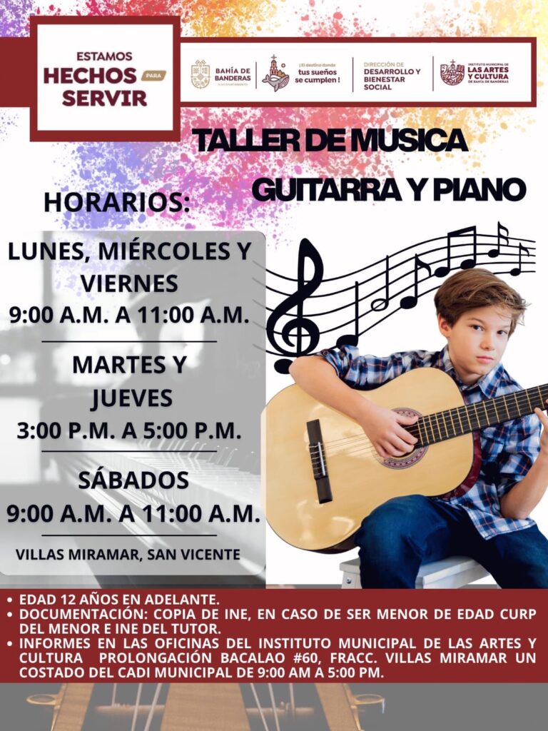 Con esto, el Gobierno Municipal de Bahía de Banderas busca incentivar la participación cultural y el esparcimiento social, brindando espacios donde la población pueda desarrollar habilidades artísticas y fortalecer la convivencia.