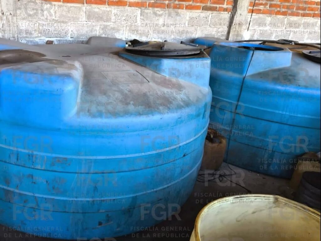 En el domicilio, las autoridades aseguraron tres bidones, 20 contenedores con 22 mil 410 litros de hidrocarburo y una bomba de agua, por lo que el predio e indicios quedaron a disposición del MPF mientras que la gasolina fue remitida a PEMEX para su trasvase y análisis.