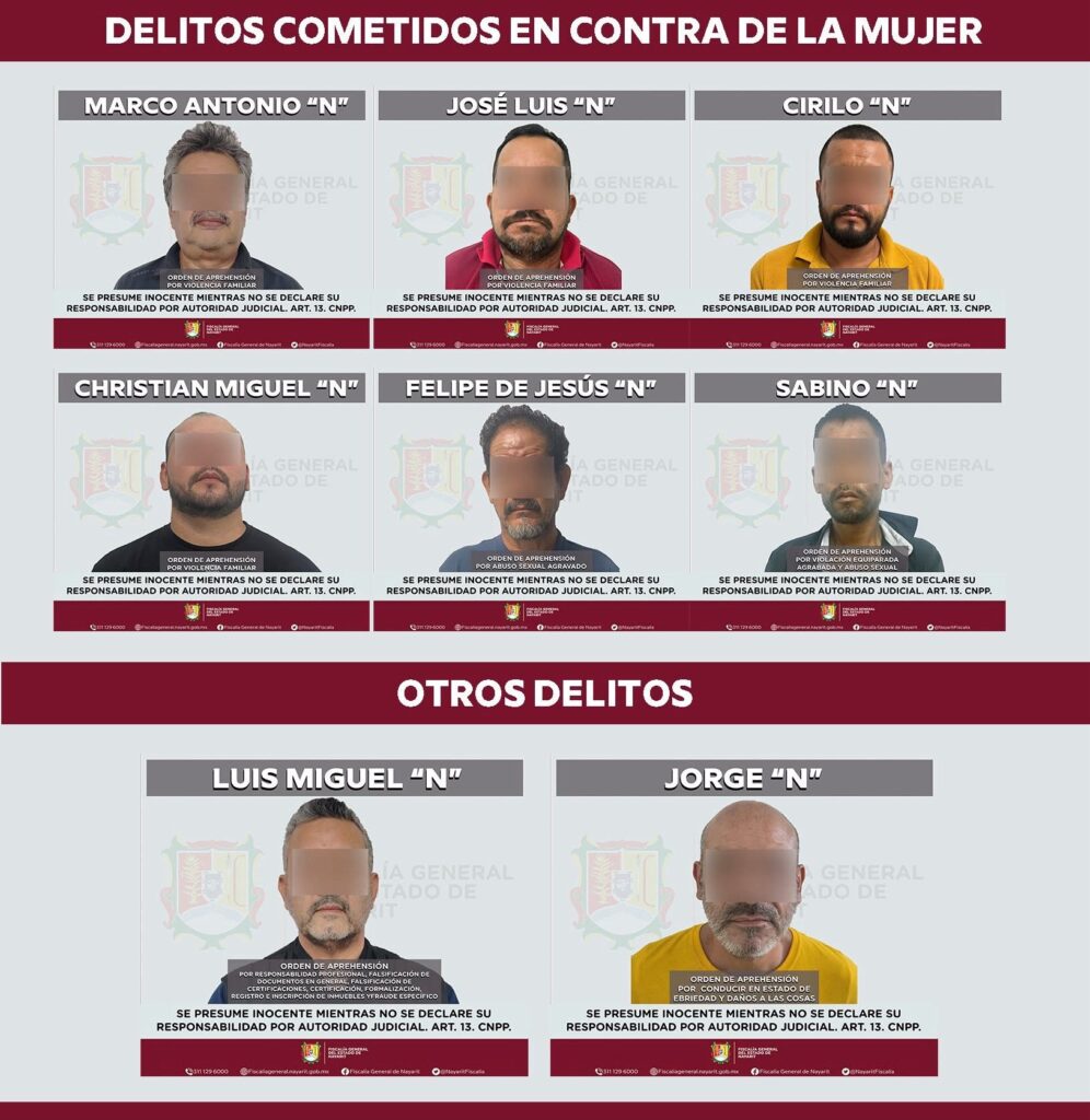Tepic, Nayarit. – Al continuar las acciones para combatir la violencia de género y fortalecer el acceso a la justicia, la Fiscalía General del Estado de Nayarit ejecutó los días 27 y 28 de diciembre un total de 9 órdenes de aprehensión por diversos delitos, en distintos municipios de la entidad.