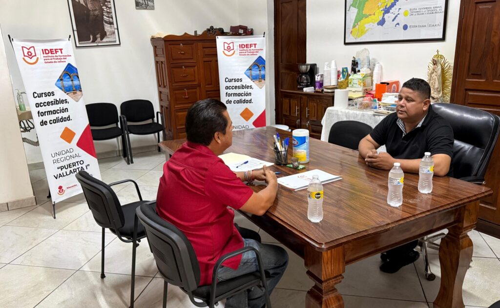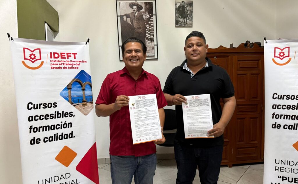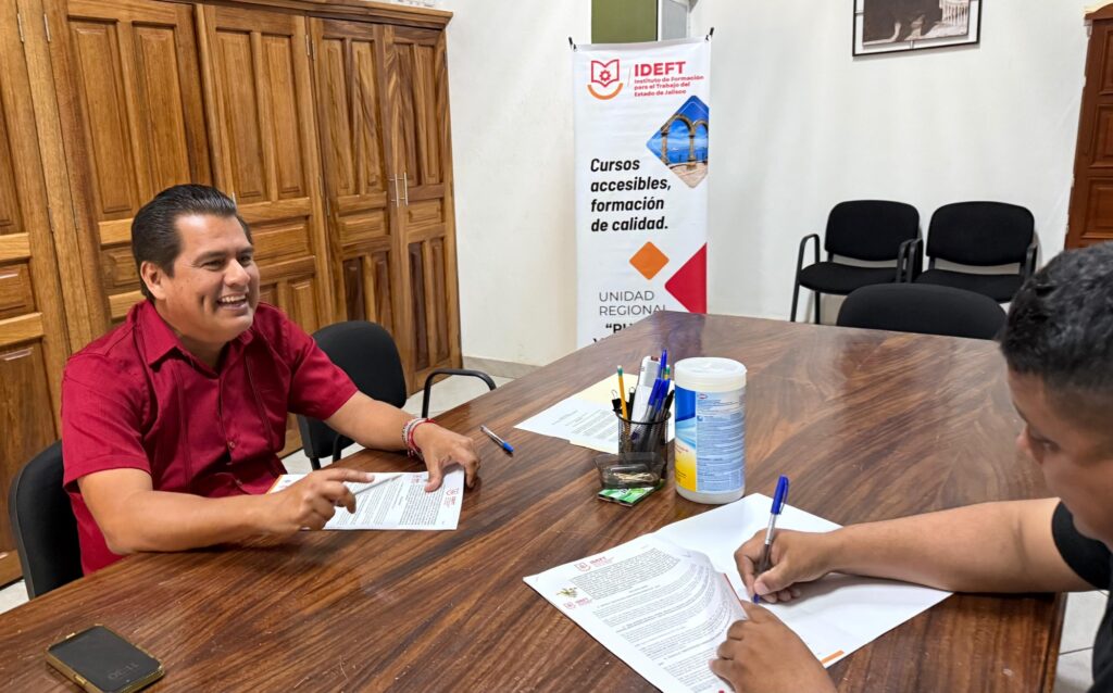 En la Casa Ejidal de Las Palmas, la semana pasada se llevó a cabo la firma del Convenio de Colaboración entre el Instituto de Formación para el Trabajo del Estado de Jalisco (IDEFT) y la Asociación Agrícola Las Palmas, a través de la Unidad Regional Puerto Vallarta dirigida por el Lic. Francisco Javier Bravo Carbajal, en un encuentro de trabajo sostenido con el Presidente del Ejido Las Palmas, David Morales Meza.