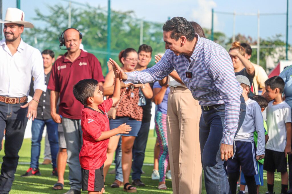En un ambiente lleno de entusiasmo, el presidente municipal Héctor Santana García entregó oficialmente una nueva cancha de fútbol rápido en el poblado de Altavela, un espacio moderno, seguro y pensado especialmente para que niñas, niños y jóvenes tengan un lugar digno donde jugar, convivir y soñar en grande.