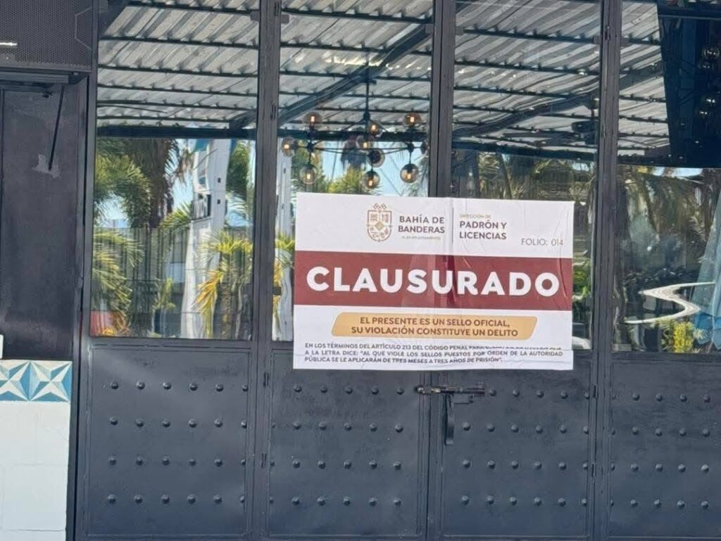 El Gobierno de Bahía de Banderas informa que, como parte de las acciones para garantizar el cumplimiento de la normativa municipal, se procedió a la clausura del bar The Drunken Duck Cantina, ubicado en Nuevo Nayarit, debido a que operaba fuera del horario permitido en el reglamento de funcionamiento y venta de bebidas alcohólicas.