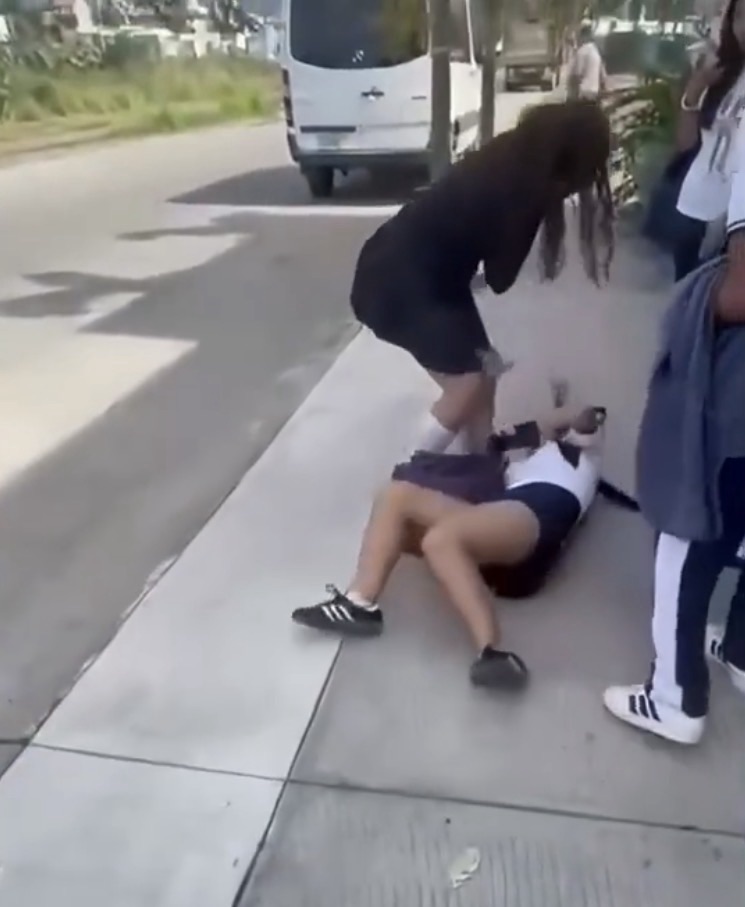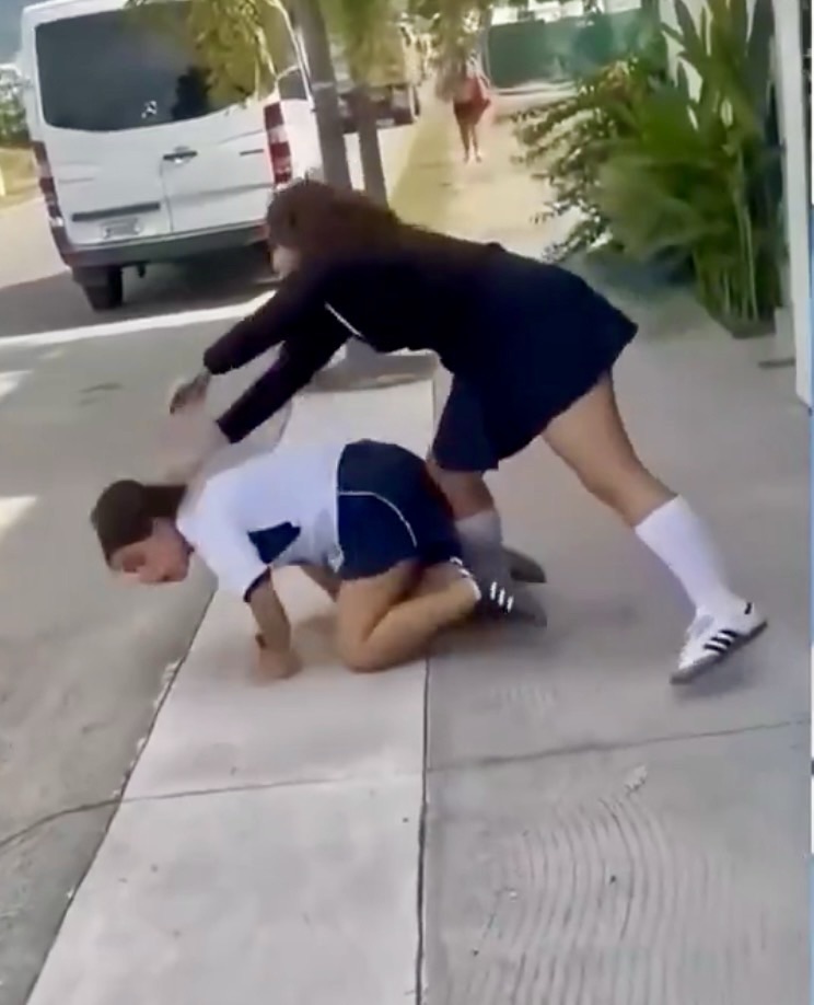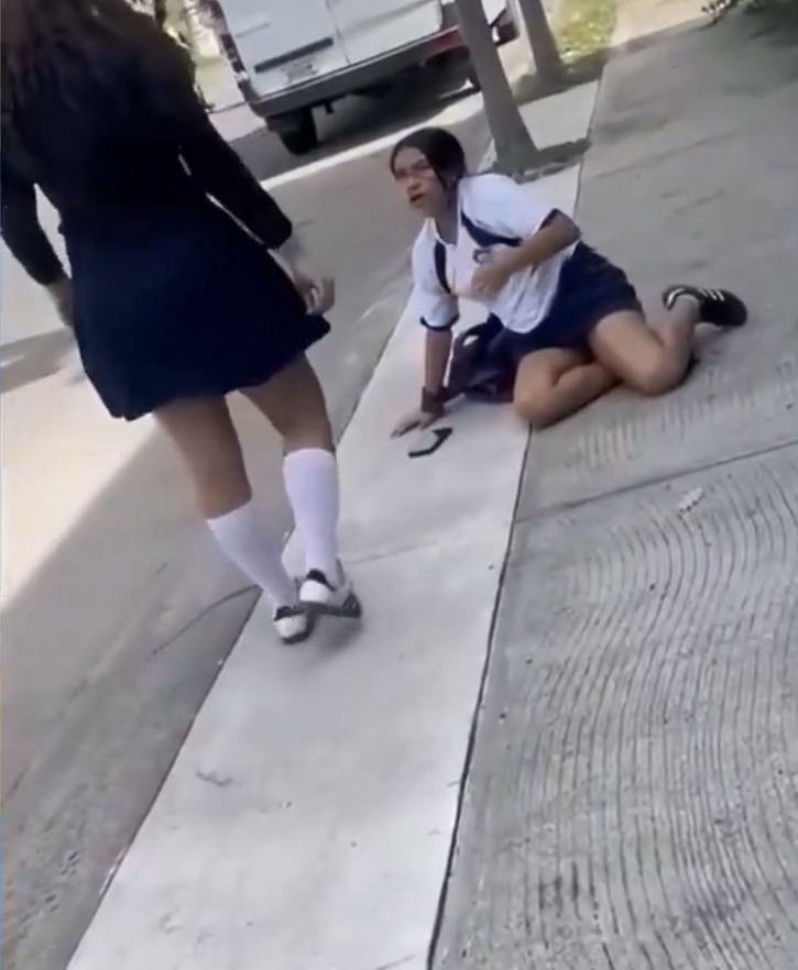 En un video que circula en redes, lamentablemente puede observarse como una joven, de nombre Regina lanza al aire a su compañera, para que una vez, en el suelo le propina tremendo golpe en el rostro; sin que la agredida pudiera defenderse. Mientras, otros jóvenes ahí presentes, entre risas, graban la escena y algunas más tratan de calmar la furia de Regina.