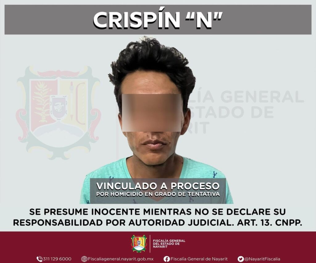 La Fiscalía General del Estado obtuvo de un Juez de Control auto de vinculación a proceso contra Crispín “N”, por su presunta participación en hechos que bajo la apreciación de la ley configuran el delito de homicidio en grado de tentativa, cometido en agravio de una persona de sexo masculino cuya identidad es reservada.