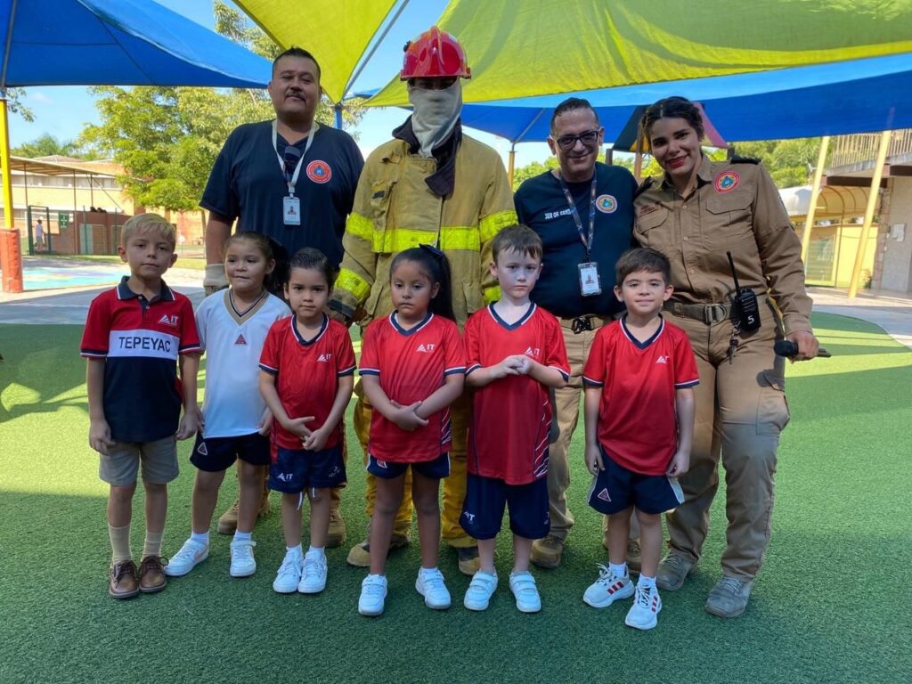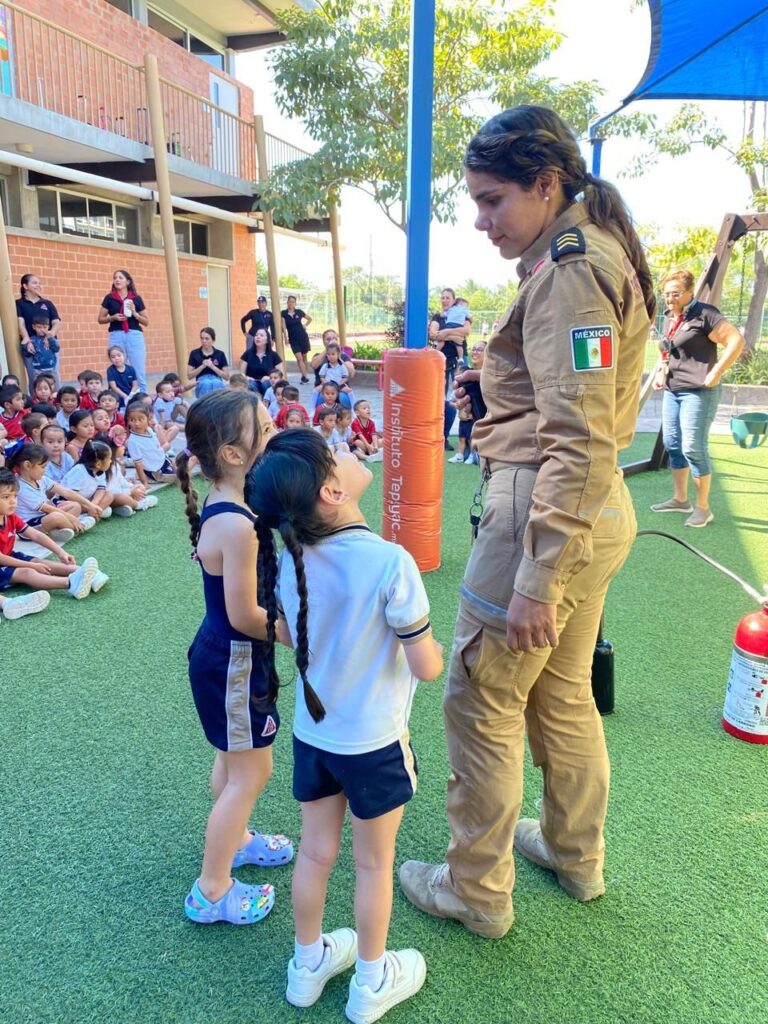 También estuvieron presentes en el Instituto Tepeyac con niños pequeños a quienes les enseñaron temas de prevención de riesgo, accidentes e incendios enfocados a su edad, contribuyendo de esta manera con la cultura de la auto protección en la población escolar.