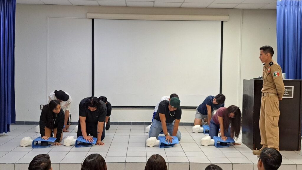 Elementos de Protección Civil estuvieron presentes en el Instituto Tecnológico José Mario Molina Pazquel y Henriques donde impartieron a los estudiantes un curso de Primeros Auxilios con el objetivo de enseñar a los participantes a reconocer y atender emergencias, así como participar en la reanimación cardiopulmonar.