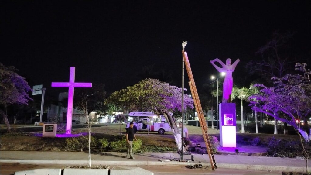 Asimismo, destacó que desde hace un par de semanas comenzaron con la limpieza y la colocación de luminarias en el Parque de las Mujeres, destacando el color morado que ilumina la escultura del ángel y el memorial de las víctimas de feminicidio.