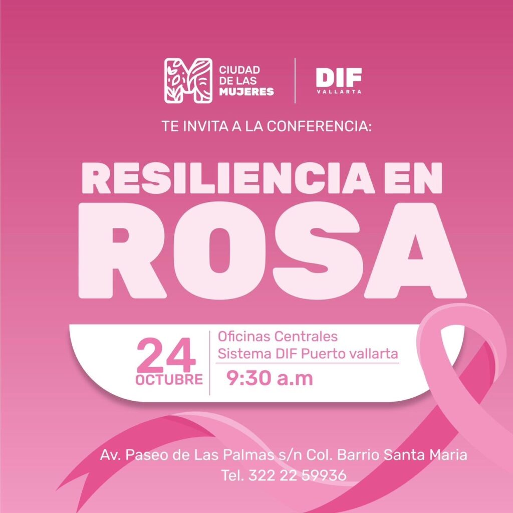 Como parte de las actividades durante el mes de la lucha contra el cáncer de mama, el Sistema DIF de Puerto Vallarta, que preside Claudia Peña, llevará a cabo la charla gratuita «Resiliencia en Rosa», dirigida a mujeres, hombres y familiares de quienes luchan contra esta enfermedad.