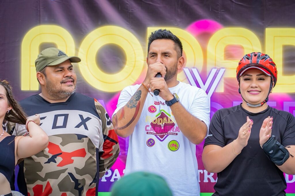 El regidor Christian Bravo Carbajal, en representación del alcalde, dio el banderazo de salida y manifestó que la rodada unió familias y fomentó el deporte en un ambiente armonioso.