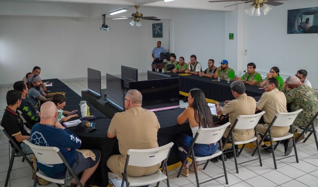 Durante la reunión se expusieron datos preocupantes: en los últimos dos años, el arribo de tortugas en Puerto Vallarta se ha reducido hasta en un 40%, consecuencia del cambio climático y fenómenos como La Niña. En la temporada 2024-2025 se registró una caída del 45%, con apenas 571 nidos y 67 mil crías liberadas, mientras que zonas críticas como Boca de Tomates han reportado más de 70 casos de tortugas sacrificadas en un solo año. Además del impacto climático, se denunció la amenaza humana directa: entre el 35% y 40% de los nidos son saqueados, y en algunos casos se ha detectado la presencia de personas armadas en áreas de anidación, lo que representa un delito federal.