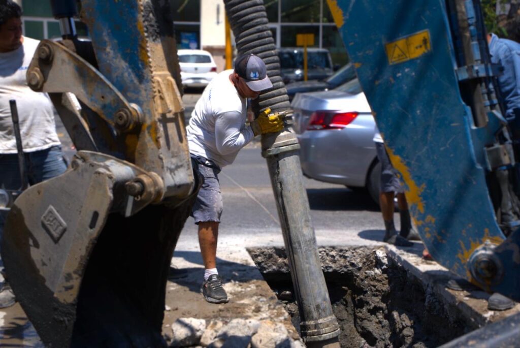 Para cuidar el medio ambiente y la salud de la población, SEAPAL Vallarta realiza la reparación emergente de una tubería de drenaje sanitario en la Avenida Francisco Villa, entre la calle Alondra y Golondrina.